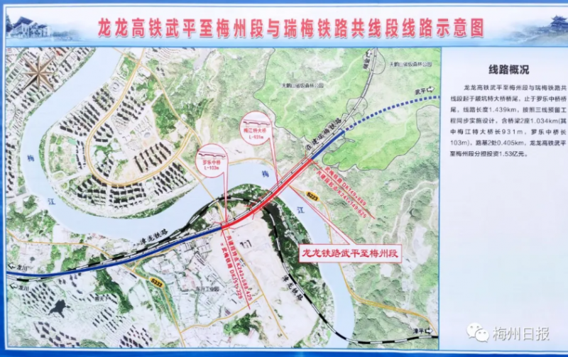 新建龍巖至龍川鐵路武平站(不含)至梅州西站(不含),正線長度102.366公里,廣東段約89公里。