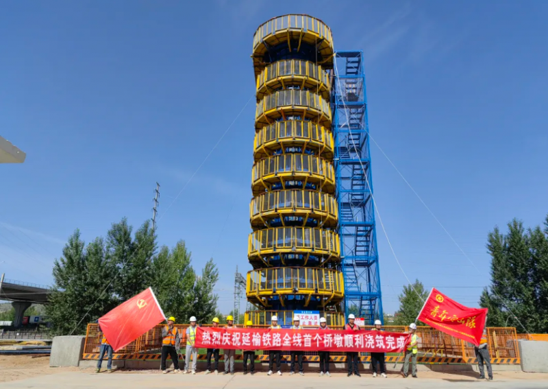 榆林日報訊:7月12日上午,隨著最后一方混凝土入模,延榆高鐵站前工程11標閆莊則跨包西立交特大橋96#墩身順利澆筑完成,成為延榆高鐵全線首個完成澆筑的墩身,標志著延榆高鐵全線墩身施工正式拉開序幕。