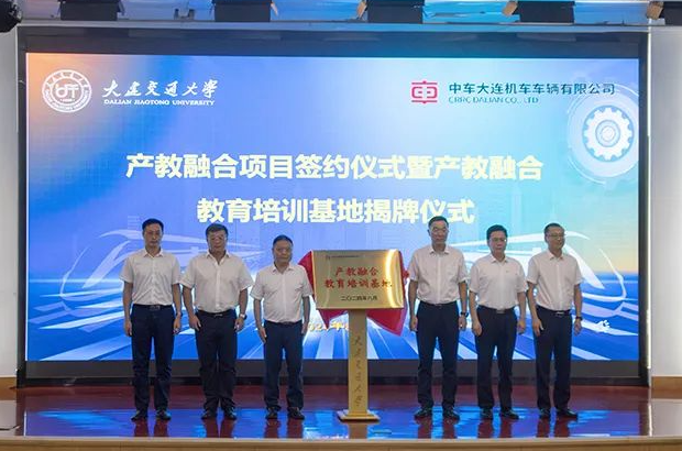 8月9日,大連交通大學與中車大連機車車輛有限公司“產(chǎn)教融合項目簽約儀式暨產(chǎn)教融合教育培訓基地揭牌儀式”在圖書館報告廳舉行。