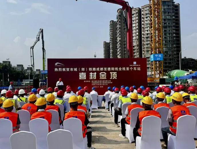 8月28日上午,隨著最后一方混凝土澆筑完成,標志著市域(郊)鐵路成都至德陽線工程(以下簡稱“成德線”)五洲廣場站主體結構順利實現封頂,為后續盾構下井始發等施工提供了條件,拉開了全線地下車站全面沖刺結構施工的序幕。