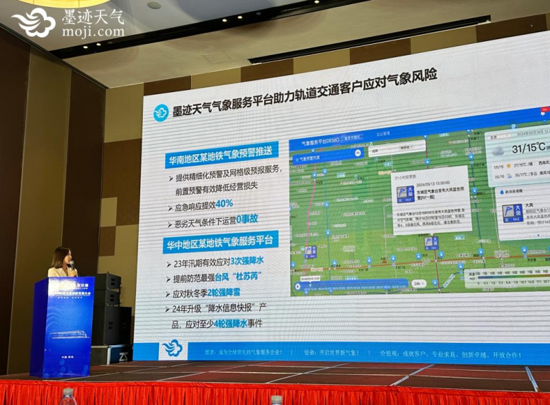 圍繞氣象數(shù)據(jù)如何獲取、預(yù)報(bào)預(yù)警精度如何提升、應(yīng)急預(yù)案建議等痛點(diǎn),墨跡天氣與多地地鐵運(yùn)營(yíng)單位展開(kāi)合作,以解決軌道交通氣象服務(wù)中的難題。史彬介紹,在與華南地區(qū)某地鐵集團(tuán)合作中,墨跡天氣通過(guò)精細(xì)化預(yù)警、臺(tái)風(fēng)預(yù)報(bào)及地鐵站點(diǎn)網(wǎng)格天氣預(yù)報(bào)等服務(wù),幫助其有效進(jìn)行了天氣風(fēng)險(xiǎn)的前置預(yù)警,提升地鐵系統(tǒng)40%應(yīng)急聯(lián)動(dòng)效率,實(shí)現(xiàn)了惡劣天氣條件下安全運(yùn)營(yíng)0事故。