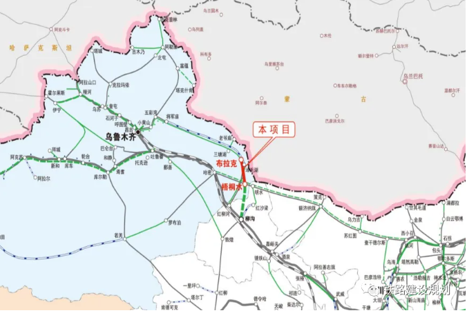 西端與既有烏將鐵路相接,東端與規劃布拉克至梧桐水鐵路銜接,可連通臨哈鐵路,形成出疆北部新的大能力通道。
