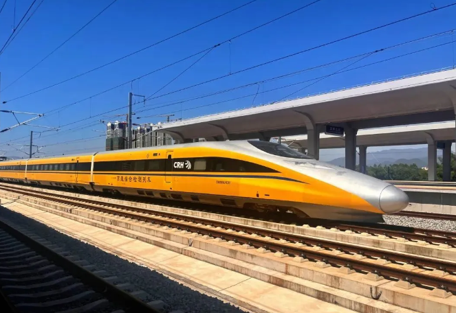 南珠高鐵南玉段正線全長193.31公里,最高設計時速350公里。按照規定,CRH380AJ-0201綜合檢測列車在逐級提速過程中,測試列車各區段最高運行速度不應超過該區段線路允許速度的110%,因此,南珠高鐵南玉段最高檢測速度將達到每小時385公里。