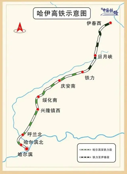 哈伊高鐵是我國“八縱八橫”高鐵網(wǎng)京哈至京港澳通道的延長線,起自黑龍江省哈爾濱市,途經(jīng)綏化市,終至伊春市,正線全長318公里,設(shè)計時速250公里,全線設(shè)哈爾濱、哈爾濱北、呼蘭北、興隆鎮(zhèn)西、綏化南、慶安南、鐵力、日月峽、伊春西9座車站。