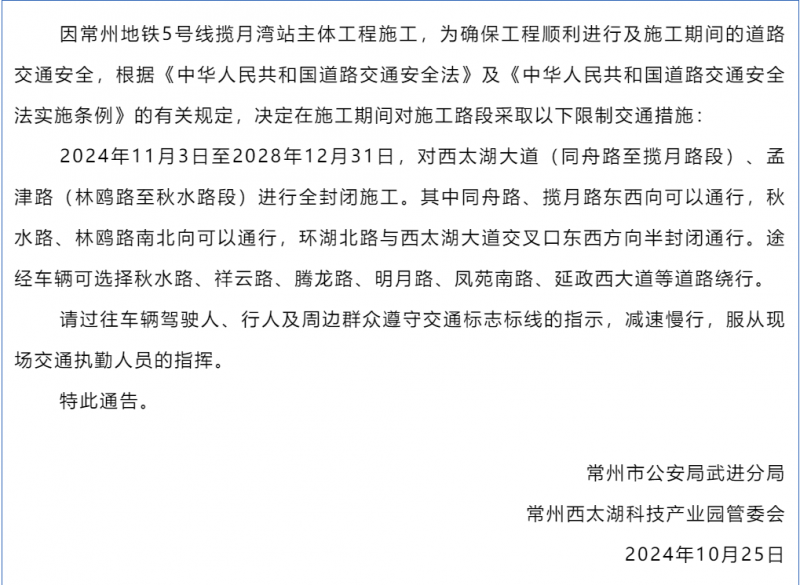 11月3日,常州地鐵5號線攬月灣站圍擋封閉及交通疏解工作順利完成,該站主體工程開始進場施工。