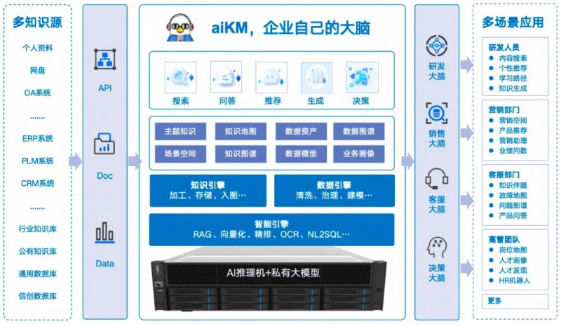 基于藍凌新一代智能知識管理平臺aiKM,助力企業大腦構建,標配私有化大模型,提供多源知識數據接入、多態知識管理,滿足研發大腦、營銷大腦、決策大腦等多場知識消費,賦能組織業務高質量發展,激發新質生產力。
