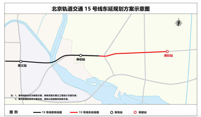 近日,北京市基礎(chǔ)設(shè)施投資有限公司網(wǎng)站對《北京軌道交通15號線東延線路一體化規(guī)劃方案》進(jìn)行公示。根據(jù)方案,15號線將從俸伯站向東延長至順義區(qū)南彩站,規(guī)劃南彩站也是一座新建站。
