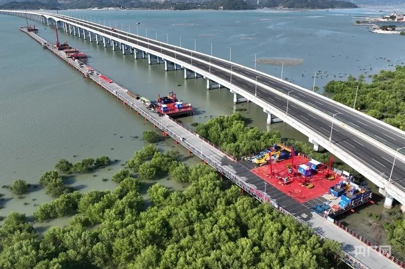 產(chǎn)業(yè)工人正在操作機械進(jìn)行漳汕高鐵湛江灣跨海特大橋樁基作業(yè)(央廣網(wǎng)發(fā) 沈嘉鵬 攝)此次開工建設(shè)的漳江灣跨海特大橋項目全長5.8公里,海域部分達(dá)5公里。大橋橫跨G228公路橋,并鄰近漳江口紅樹林國家級自然保護(hù)區(qū)等區(qū)域。橋梁主墩設(shè)計采用預(yù)應(yīng)力混凝土連續(xù)剛構(gòu)。“施工過程中,我們采用信息化管控系統(tǒng),實時監(jiān)測環(huán)境影響,并通過旋挖鉆、沖擊鉆工藝及懸臂智慧造橋機等技術(shù),以智能化手段提升工程效率與安全性,同時也減少對周邊環(huán)境的干擾。”項目建設(shè)單位相關(guān)負(fù)責(zé)人說。