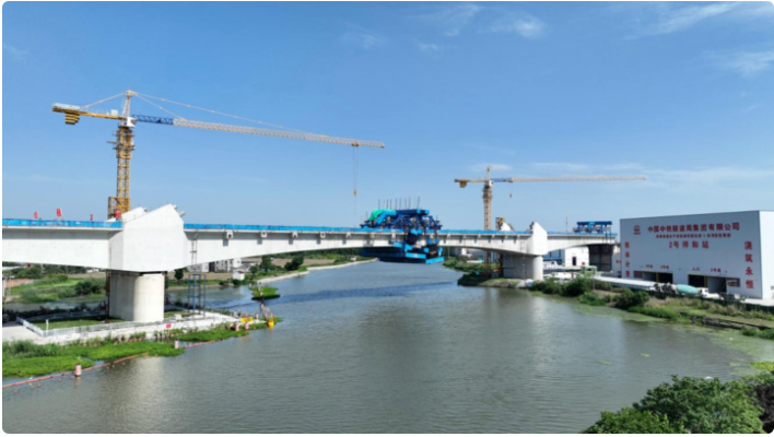 通蘇嘉甬高鐵蘇南特大橋跨牛長涇連續梁主跨合龍