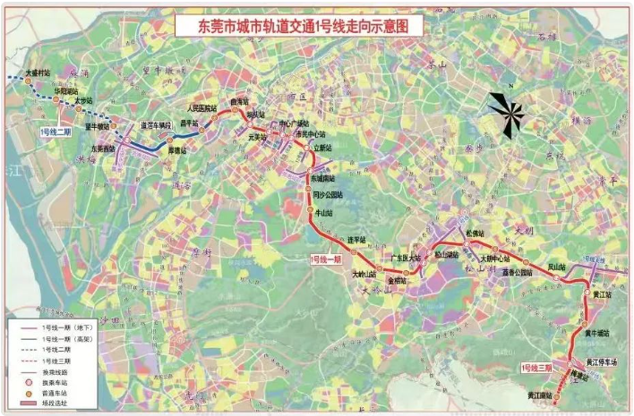 東莞軌道交通1號線是東莞城市軌道交通線網市域骨干線路之一,項目計劃分三期建設。其中,1號線一期起于東莞西站(原工程名望洪站),終于梅塘站(原工程名黃江中心站),長57.99公里,途經望牛墩、洪梅、道滘、萬江、南城、東城、大嶺山、松山湖、大朗和黃江10個鎮街(園區),實現中心城區與水鄉片區、松山湖片區的快速聯系。一期工程共設車站25座、車輛段和停車場各1座,具有線路長、速度快、內聚外聯等特點,設計最高時速120公里,項目爭取2025年底開通運營。