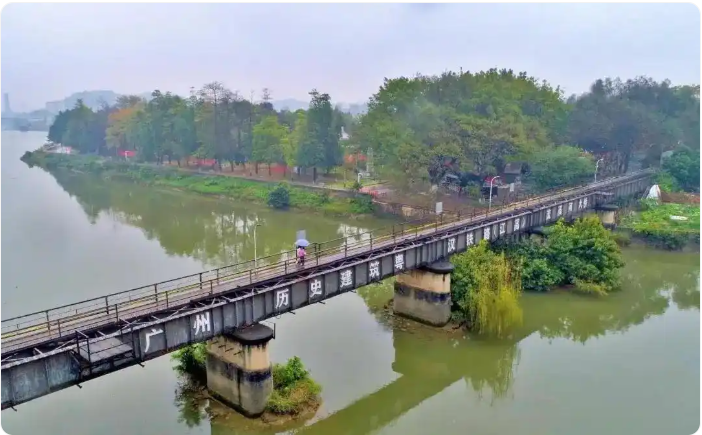 粵漢鐵路是京廣鐵路南段鐵路的舊稱,始建于1900年,直到1936年才全線通車,歷經晚清、民國時期,見證了近代中國鐵路主權爭奪與經濟格局變遷,其現存可考的遺存共五處。其中,粵漢鐵路流溪河大橋遺址是粵漢鐵路跨過流溪河的鐵路橋。1957年武漢長江大橋建成后,粵漢鐵路與北京到漢口的京漢鐵路兩路接軌,改稱為京廣鐵路,粵漢鐵路一名開始逐漸淡出歷史舞臺。1987年,因鐵路升級需要,相關部門重新修建了一條京廣鐵路新線。原來的粵漢鐵路則大部分被拆除,僅保留了橫跨流溪河段,現是當地居民從江高鎮愛國東路經過流溪河到達江高體育公園的一座人行橋。2016年,粵漢鐵路流溪河大橋被公布為廣州市歷史建筑,是廣州目前公布的僅有的一座粵漢鐵路大橋遺址。