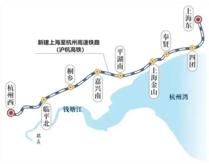 此次規(guī)劃的滬杭高鐵,設計時速350公里,線路全長約223.8公里,總投資670.97億元。它從杭州西站出發(fā),經過臨平北、桐鄉(xiāng)、嘉興南、平湖南、上海金山、奉賢、四團,止于上海東站。新線不僅將擴充現(xiàn)有運能,更能對滬杭走廊進行加密,將新建奉賢、上海金山、平湖南、臨平北4座車站,改擴建四團、嘉興南、桐鄉(xiāng)、杭州西4座車站。