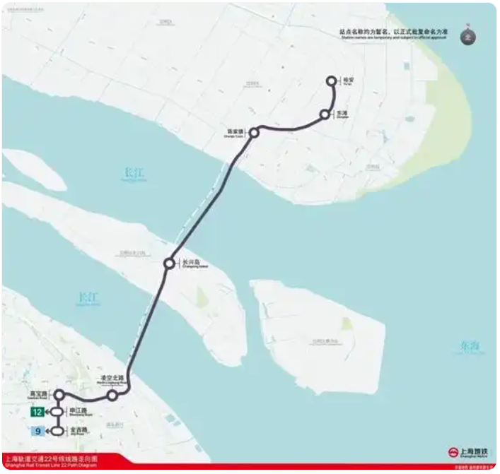 截至 2025 年 10 月 25 日,軌道交通 22 號線(崇明線)工程已實現全部車站主體結構封頂(共 8 座),盾構隧道全部貫通(共 28 條隧道,含越江大盾構南港和北港隧道),旁通道全面開工。軌道鋪設也已分段開工,大盾構隧道已全部移交鋪軌。長興島主變、陳家鎮主變 2 座新建主變土建完成結構封頂,長興島主變和金橋主變開始設備安裝,2 座停車場主要庫房也已封頂。