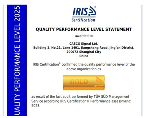 卡斯柯對安全質量堅持嚴苛要求,是業內成立獨立的系統安全部、將質量和安全分立管理的首家企業。從2013年首次通過IRIS認證,到2022年獲得銀級績效認定,再到此次問鼎金級績效認證,十余年不懈努力,實現了質量管理體系的持續升級。
