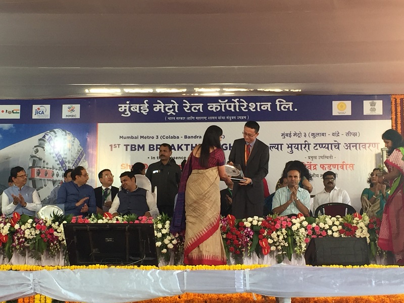 9月24日,唐國才總領事應邀出席孟買地鐵三號線首條盾構區間貫通儀式。印度馬哈拉施特拉邦首席部長法德納維斯、孟買地鐵公司董事總經理艾詩薇妮女士、上海城建國際總經理周雋等參加儀式。