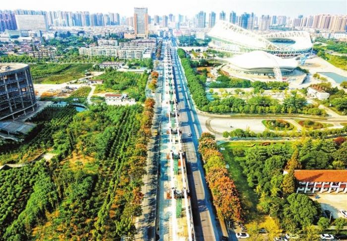 近日,記者在九華南路上看到,軌道交通1號線軌道梁架設已顯雛形,軌道梁連接在一起穿城而過,甚是壯觀。蕪湖市軌道交通1號線北起保順路站、南至白馬山站,線路全長30.517公里,共設車站25座。