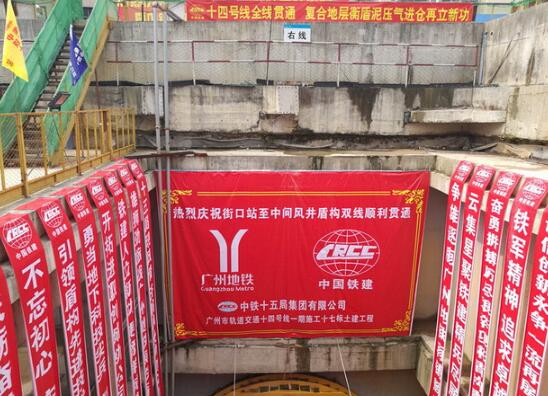 據了解,該標段施工環境極其復雜,需要穿越流溪河和大片民房,地質條件為上面是砂層、下面是花崗巖的復合地層,上軟下硬懸殊,裂隙水發育,是14號線土建工程的重大風險點,其中最大的風險是開倉換刀。在盾構掘進期間,在地面無加固條件且開挖面不穩定的情況下,施工單位應用廣州地鐵監理公司發明的“衡盾泥工法”,開倉12次全部成功,共使用衡盾泥336噸,最長帶壓進倉時間為11天36倉。經過全線工程人員的努力奮戰以及“衡盾泥”輔助氣壓開倉的應用,14號線“攻城拔寨”路上的難題被一一攻克,再一次見證了“衡盾泥”在帶壓開倉中的“神奇”作用。