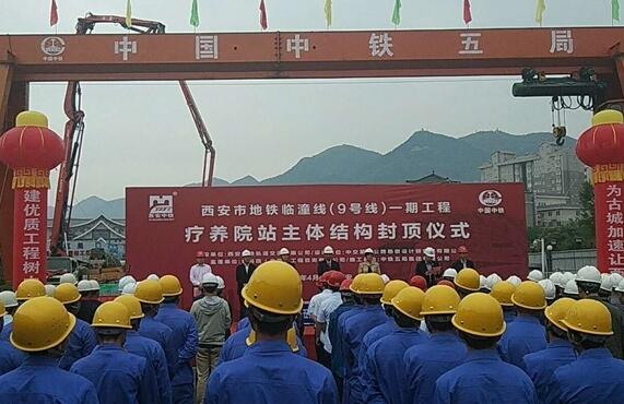 4月28日上午,由中鐵五局集團(tuán)承建的西安地鐵九號(hào)線療養(yǎng)院站順利封頂,這也是九號(hào)線首個(gè)封頂?shù)脑诮ㄜ囌尽?
