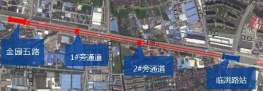 臨洮路~金園五路區間上行線總長1418.788米,隧道縱坡為”V”型坡,隧道頂埋深約9.2米~17.5米。14號線4標第二臺盾構機順利進洞,標志著14號線浦西段首段區間貫通。
