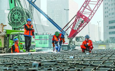 “這一個鋼筋籠就有50噸重,寬6米高37.5米,整個工程能用上90個!”10月23日上午10時,項目技術負責人張維終于篩查驗收完了鋼筋籠的每一處細節,拿起對講機對著吊車司機說“開工”。這個“巨無霸”被緩緩吊到了半空中,上面懸掛著的“祝賀地鐵17號線工程太陽宮車站順利開工”字樣的紅色條幅格外顯眼,50多名工人歡呼雀躍,紛紛拿出手機拍照。不一會兒,它就被安裝到了工地一隅深達44米的槽溝內。這些鋼筋籠如鎧甲一般,將成為地下空間的維護結構,待全部安置完畢后,明年5月起工人們將進行土方開挖作業,隨即進行車站主體結構施工。