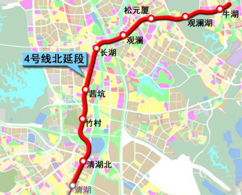 4號線北延線即4號線三期工程,是由清湖站牽出,沿觀瀾大道、高爾夫大道敷設,到達牛湖站。
