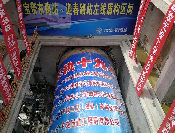 近日獲悉,蘇州軌道交通3號線10標(biāo)寶帶東路站~迎春路站區(qū)間左線“蘇軌十九號”盾構(gòu)機(jī)順利始發(fā)。