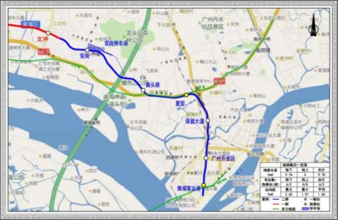 廣州市地鐵5號線東延段(文沖~黃埔客運港),西起已開通運營5號線一期工程的文沖站,東至黃埔客運港站,途徑雙崗、夏園、廣州開發區、終點為黃埔客運港。線路全長9.76公里,全部采用地下敷設方式,共設車站6座(不含文沖),其中換乘站2座,設停車場一處,為雙崗停車場,并對一期的魚珠車輛段大架修進行擴容改造。東延段工程作為五號線的一部分將與既有魚珠車輛段內一期工程控制中心合并調整至鎮龍區域控制中心;設主變電站1座(為墩美主變電所,已與十三號線一期工程同期建設,預留為五號線東延段供電條件,已獲環評批復)。5號線東延段選擇與既有線相同的系統制式,即最高時速90公里的6輛編組L型車。