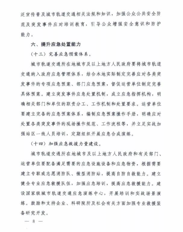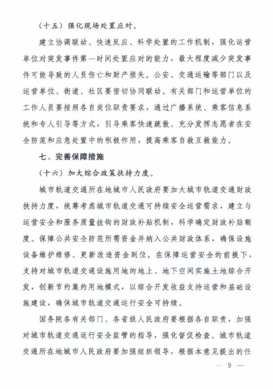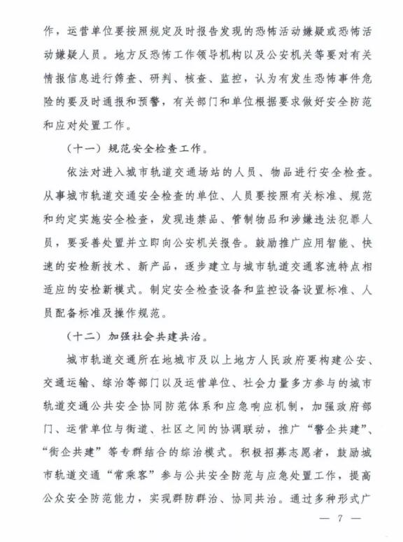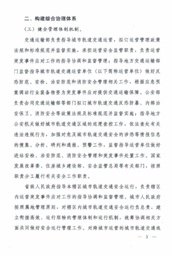 近日獲悉,交通運(yùn)輸部負(fù)責(zé)指導(dǎo)城市軌道交通運(yùn)營,擬訂運(yùn)營管理政策法規(guī)和標(biāo)準(zhǔn)規(guī)范并監(jiān)督實(shí)施,承擔(dān)運(yùn)營安全監(jiān)管職責(zé),負(fù)責(zé)運(yùn)營突發(fā)事件應(yīng)對工作的指導(dǎo)協(xié)調(diào)和監(jiān)督管理;公安部負(fù)責(zé)會同交通運(yùn)輸部等部門擬訂城市軌道交通反恐防暴、內(nèi)部治安保衛(wèi)、消防安全等政策法規(guī)及標(biāo)準(zhǔn)規(guī)范并監(jiān)督實(shí)施。