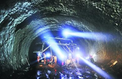 不過,工程剛啟動就遇到了棘手的難題。王向遠回憶說,地下溶洞數量龐大,曾在30米距離內出現56個溶洞。溶洞平均每小時向外涌水量達到50立方米左右,而且水中還裹挾著大量泥沙,其沉積高度與成年人膝蓋齊平,以至于人在洞內行走都要鋪設木板。