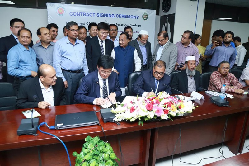 當(dāng)?shù)貢r(shí)間11月4日下午1時(shí)30分中車四方車輛有限公司與孟加拉鐵道部簽署了200輛米軌客車合同。