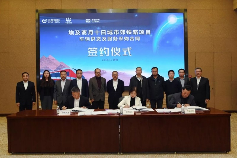12月3日下午,中車四方股份公司與中鐵-中航國際聯合體簽署了埃及齋月十日城市郊鐵路項目車輛供貨合同,包括22列(132輛)市域動車組及12年維保服務。