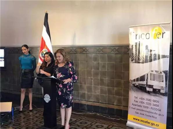 哥斯達黎加總統(tǒng)卡洛斯·阿爾瓦拉多(中)攜夫人(右一)與鐵路局董事長(左一)共同出席發(fā)布會