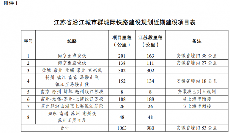 按照網絡布局,有序建設一批城際鐵路項目。近期規劃建設南京至淮安、南京至宣城等城際鐵路項目,其中江蘇省內總里程約980公里。