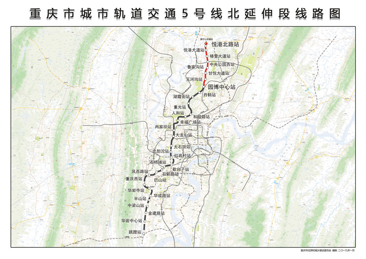 全長(zhǎng)9公里,共設(shè)車站7座(均為地下車站),投資89億元,重慶軌道交通5號(hào)線(跳蹬—悅港北路)為重慶市軌道交通線網(wǎng)中的南北向骨干線路,線路全長(zhǎng)49公里。本次開(kāi)工的5號(hào)線北延段(園博中心—悅港北路)與運(yùn)營(yíng)5號(hào)線相接,途徑兩江新區(qū)、渝北區(qū),進(jìn)一步完善中央公園片區(qū)和主城北部軌道線網(wǎng)結(jié)構(gòu),引領(lǐng)外圍區(qū)域發(fā)展,合理引導(dǎo)人口和城市功能布局優(yōu)化。