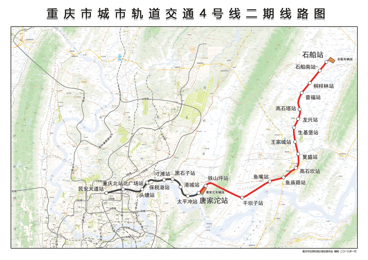 全長(zhǎng)32公里,共設(shè)車站14座(地下站10座,高架站4座),投資200億元。軌道交通4號(hào)線(盤桂路—石船)為重慶市軌道交通線網(wǎng)中東西走向的放射線,線路全長(zhǎng)60公里,本次開(kāi)工的4號(hào)線二期(唐家沱—石船)與運(yùn)營(yíng)的4號(hào)線一期(民安大道—唐家沱)和規(guī)劃4號(hào)線西延段(盤桂路—民安大道)相接,強(qiáng)化了東部槽谷與主城核心區(qū)的快速聯(lián)系,串聯(lián)唐家沱、魚(yú)嘴、龍興組團(tuán)以及果園港、鐵山坪、復(fù)盛交通樞紐等重要節(jié)點(diǎn)和區(qū)域,對(duì)于帶動(dòng)?xùn)|部槽谷快速發(fā)展、緩解主城交通擁堵具有重要作用。
