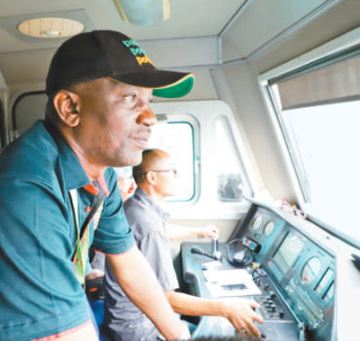 拉各斯的列車駕駛員阿馬奧·奧蘭萊瓦居正在認真駕駛新列車。