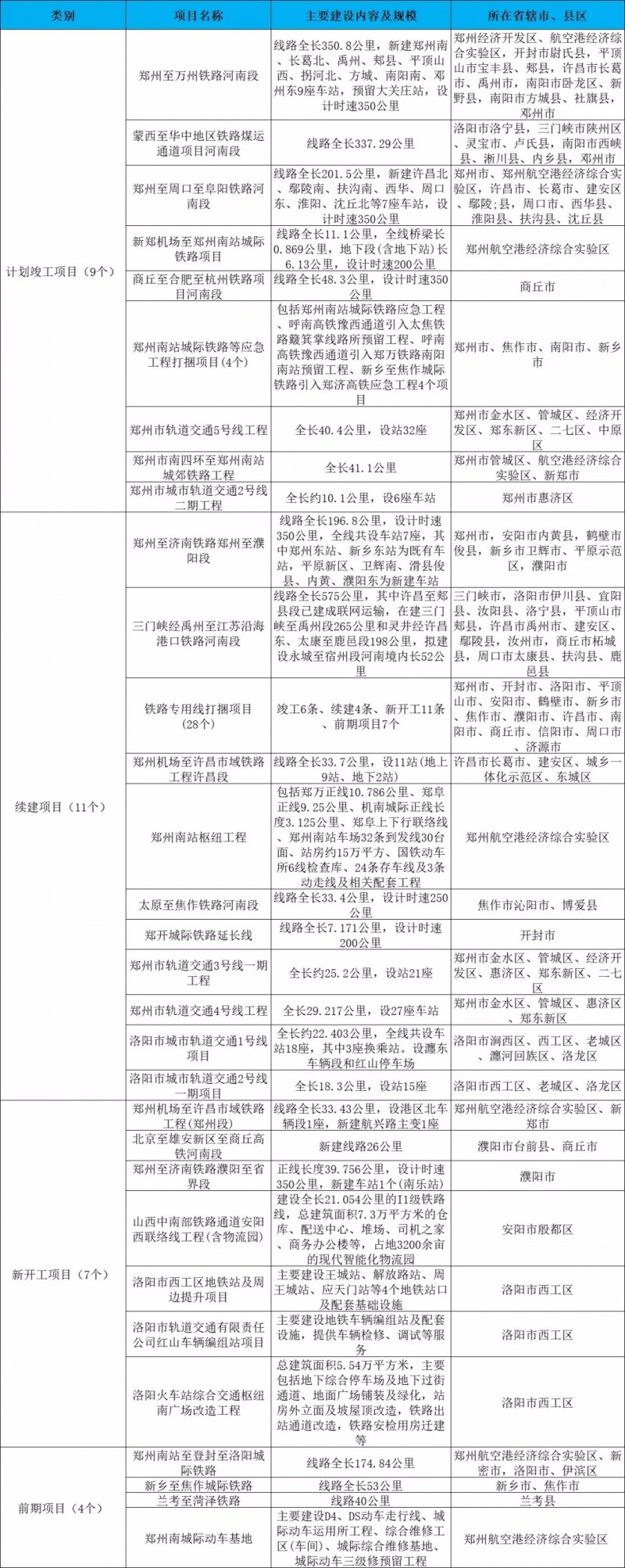 其中,涉及軌道交通的項(xiàng)目主要有計(jì)劃竣工項(xiàng)目9個,續(xù)建項(xiàng)目11個、新開工項(xiàng)目7個、前期項(xiàng)目4個。具體情況如下: