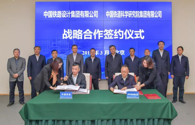 3月26日上午,鐵道科學研究院集團有限公司(以下簡稱“鐵科院集團公司”)與鐵路設計集團有限公司(以下簡稱“鐵設”)合作協議簽約儀式在鐵科院集團公司舉行。鐵科院集團公司黨委書記、董事長周黎,總經理葉陽升,副總經理羅晴、牛道安,鐵設黨委書記、董事長劉為群,總經理曾鳴凱,副總經理、總工程師孫樹禮,副總經理張利國,副局級調研員郭珠遠等相關領導出席了簽約儀式。集團公司相關部門、單位負責人參加簽約儀式。