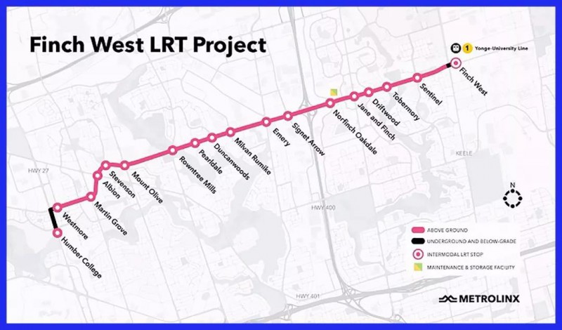 Finch West輕軌建成后,將連接到TTC 1號線Yonge-University地鐵,“讓多倫多西北部居民更快更方便地上班和上學,并且具有為該地區提供經濟刺激和社會效益的額外優勢,”MTG指出,“大多倫多地區人口不斷增長,面臨著巨大的交通擁堵和交通堵塞。FinchWest LRT是Metrolinx和安大略省正在擴展公共交通系統以解決這些問題,以使GTHA(大多倫多和漢密爾頓地區)居民及其家人的生活更快,更好,更安全。