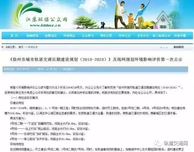 根據(jù),江蘇環(huán)保公眾網(wǎng)發(fā)布的《徐州市城市軌道交通近期建設(shè)規(guī)劃(2018-2024)》第一次公示,徐州市城市軌道交通第二輪建設(shè)規(guī)劃涵蓋地鐵3號(hào)線二期,4號(hào)線、5號(hào)線、6號(hào)線的建設(shè)規(guī)劃以及長(zhǎng)遠(yuǎn)的線網(wǎng)規(guī)劃。