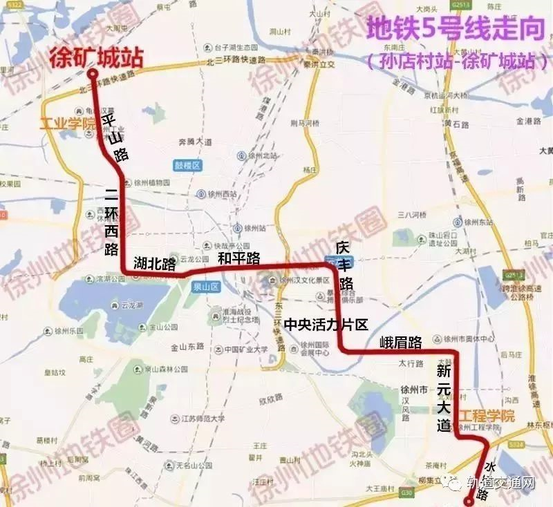 5號(hào)線起自104 國(guó)道與水壩路路口的孫店村站,向北沿水壩路— —規(guī)劃路——新元大道——峨眉路,到達(dá)中央活力片區(qū)。后沿慶豐路 ——和平路——湖北路——二環(huán)西路——平山路向北敷設(shè),終點(diǎn)位于徐礦城站。