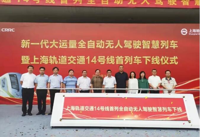 9月3日,由中車南京浦鎮車輛有限公司研制的,我國新一代大運量全自動無人駕駛智慧列車----上海軌道交通14號線首列車成功下線,標志著我國城市軌道車輛在運量和智能化方面又達到一個新高度。上海申通地鐵集團有限公司副總裁邵偉中,中車南京浦鎮車輛有限公司總經理李定南、副書記李立、副總經理李春廣等出席了儀式。