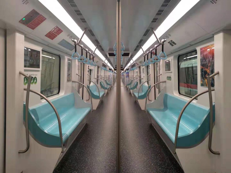 浦鎮公司新一代大運量全自動無人駕駛智慧列車更加注重乘客體驗和舒適性。結合前期大量項目積累的經驗,在新一代列車在設計之初就提出“以人為本”的設計理念。乘客界面空調出風口采用中部和側部相結合的復合出風設計,變集中出風為多點分散出風,改善車廂冷熱不均的現狀,進一步提高乘客舒適度。列車照明采用“四季+全天候變光設計”,可以根據春夏秋冬以及早中晚外部環境不同隨時自動調節色溫和照明亮度,同時聯通客室與原司機室區域,配以簡潔明朗的內飾設計,提升了車廂整體通透性,給乘客提供極致視覺享受,大幅度提升乘車體驗和舒適性。此外,列車設置USB充電插座,進一步提升人性化服務。