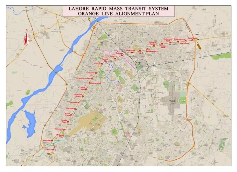 巴基斯坦拉合爾軌道交通橙線項目平面圖