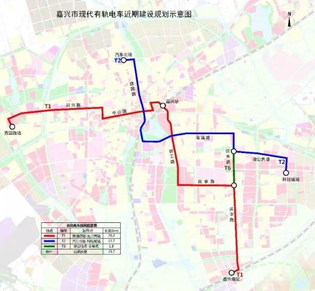 T1線為嘉興南站經(jīng)嘉興站至秀洲,長約20.2公里;
