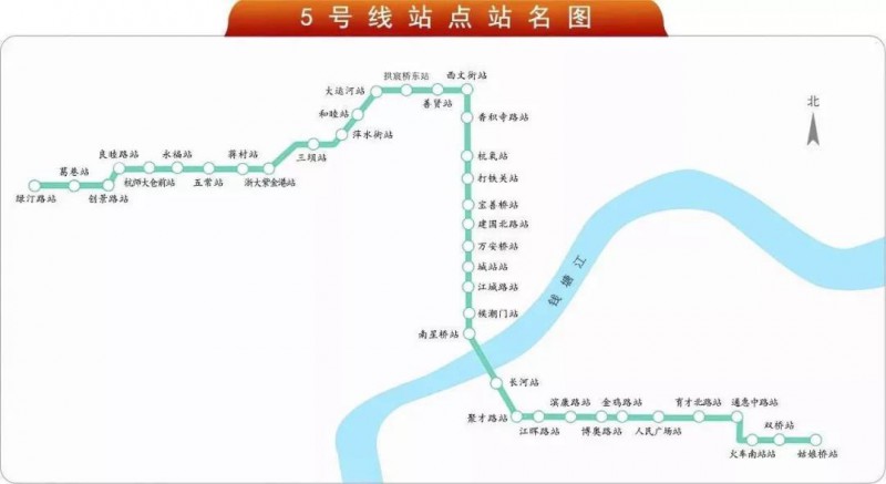 開通后5號線將經過余杭區、西湖區、拱墅區、下城區、上城區、濱江區、蕭山區7個行政區。目前,5號線后通段機電安裝和信號調試正在有序推進中,運營籌備團隊已進駐。