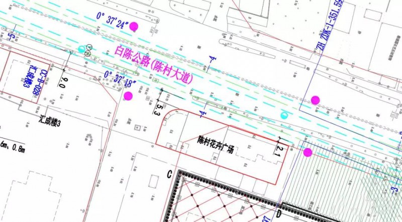 此區間全長約1.5公里,從陳村站始發,沿陳村大道向南延伸,終止于陳村新城站,期間下穿及側穿陳村花卉廣場大樓、陳村立交、陳村變電大樓等沿路建構筑物。
