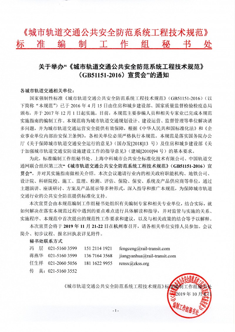 1.主辦單位:《城市軌道交通公共安全防范系統工程技術規范》標準編制工作組秘書處
