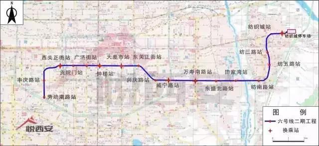 西安地鐵六號線從南客站到紡織城,屬于西安市區向西南方向的放射線路,未來將形成以鐘樓為中心的東西、南北兩條地鐵換乘線路,屆時將大大緩解鐘樓附近的交通壓力,對于拉動西安市區西南部的CID地區的發展,有著十分重要的作用。