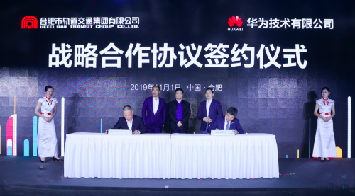 峰會期間,華為與合肥市軌道交通集團有限公司舉辦了戰略合作協議簽約儀式,安徽省數據資源管理局黨組成員、副局長錢海,合肥市軌道交通集團有限公司黨委書記、董事長陳華,華為公司副總裁、華為云業務總裁鄭葉來,華為云區總裁洪方明、華為安徽企業業務總經理單松到場出席。